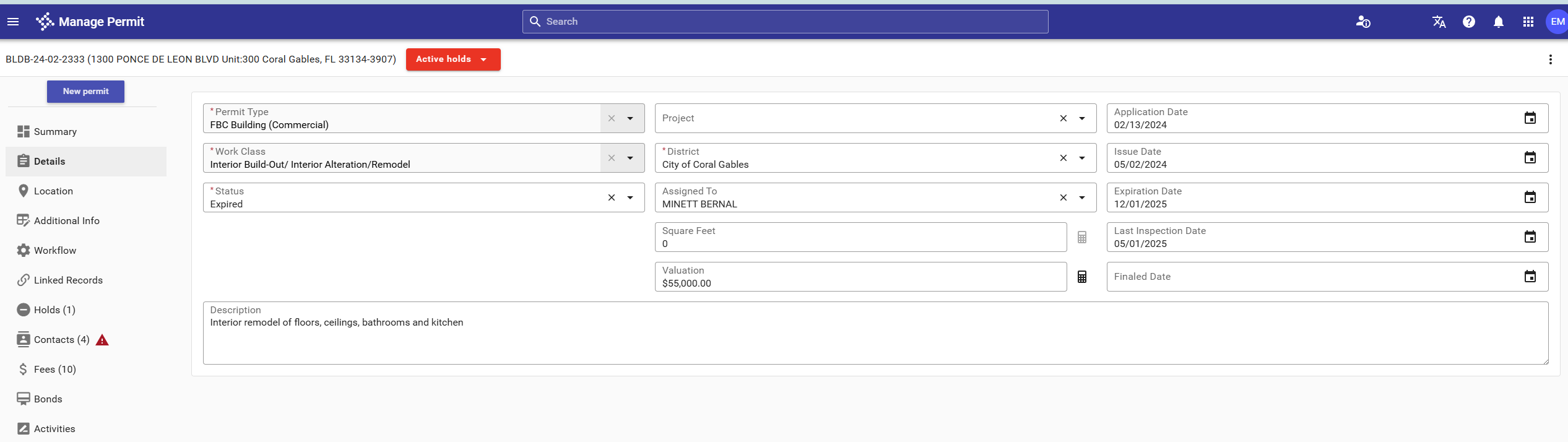 Remedy - Please renew / re-activate the permit(s)in order to call for final pending inspection(s). Inspections must be approved, in order for the permit(s) and violation to close. if you require further assistance, please contact please contact: Development Services at 305-460-5245 / developmentservices@coralgables.com .